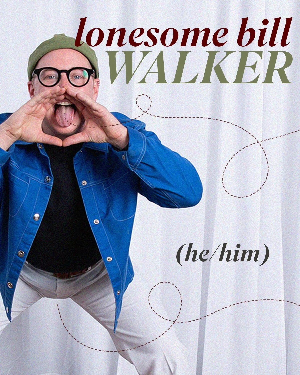 Lonesome Bill has been awarded residencies with Cactus Plus, Wedding Cake House, Pocosin School of Fine Craft, and Elsewhere Studios. He curated Tooth & Nail’s 2025 run of gallery exhibitions, brought the all-trans & queer vending event Fruit Bowl to Milwaukee’s Riverwest neighborhood in 2023, and has been performing as the portrait-drawing devil Evil Bill since 2022.